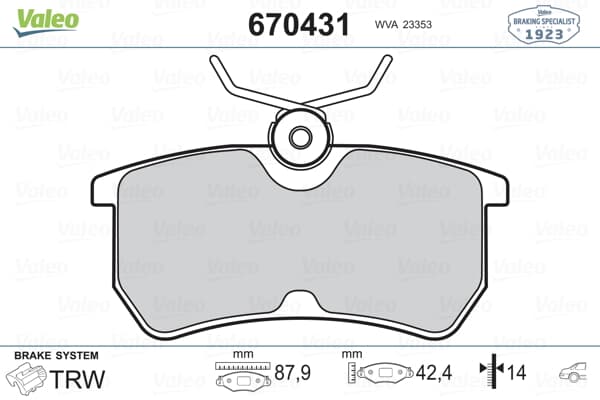 VALEO Arka Fren Balatası Focus 98>05 Fıesta Vı 1,0 / 1,5Tdcı / 1,6Tı 12 />15(Fren balata seti, diskli fren)