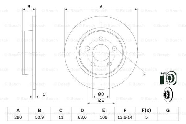 Fren Dıskı Arka 280Mm Focus Iıı Cb8 11>14 Focus Iııı Cew 14> Yenı Connect Chc 1.6 /1.5 Tdcı 15> C-Max 06>11 03> C-Max 06>11 07> Kuga 13> / Mazda 3 03> / S40 04> V50 04> C30 06> C70