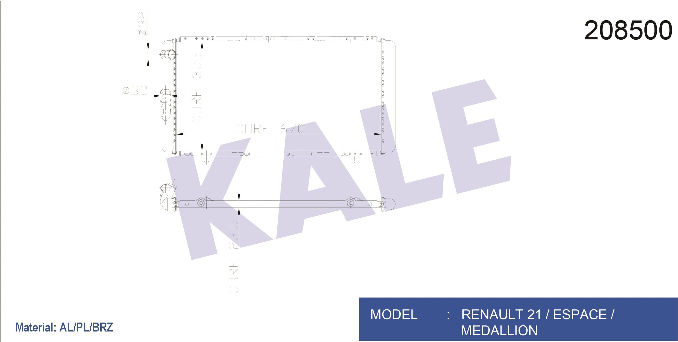 KALE RADYATOR Motor Radyator R21 Optıma Manager Concorde (1 Sıra Alb) / (670X355x23,5)